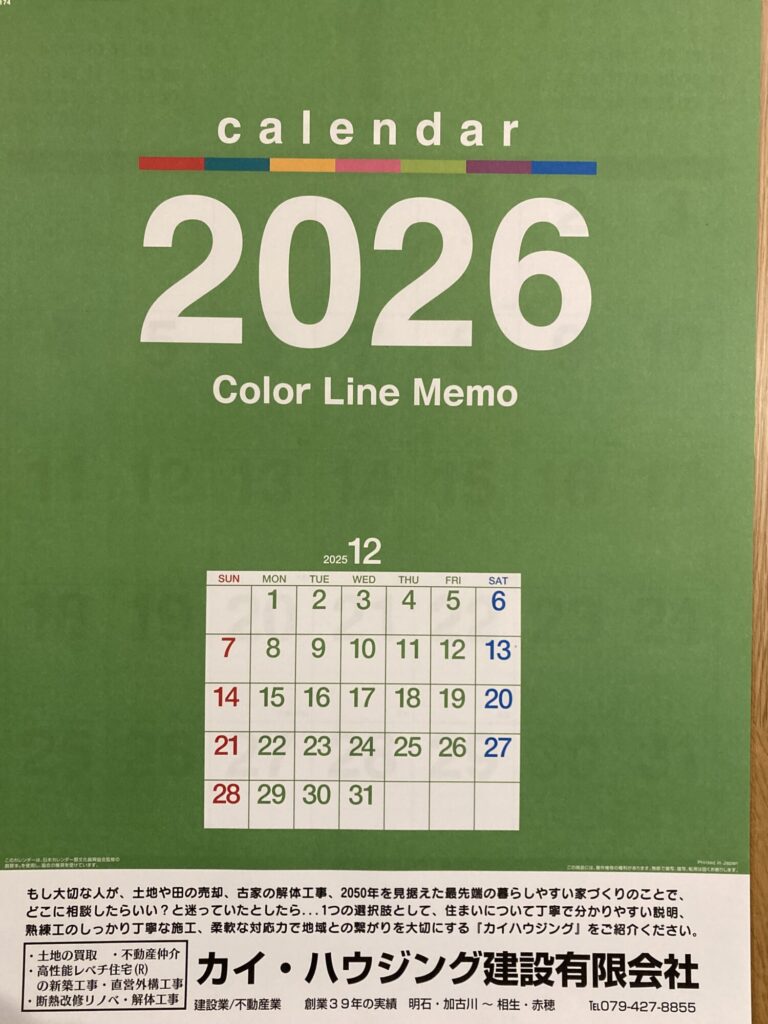 とにかくシンプルで書き込みのできる、使いやすい、カイハウジング2026年版カレンダーが完成しました!