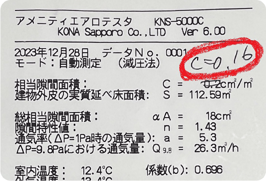 さらに、弊社はトップクラスの気密性能(実績値 0.16㎠/㎡)。
