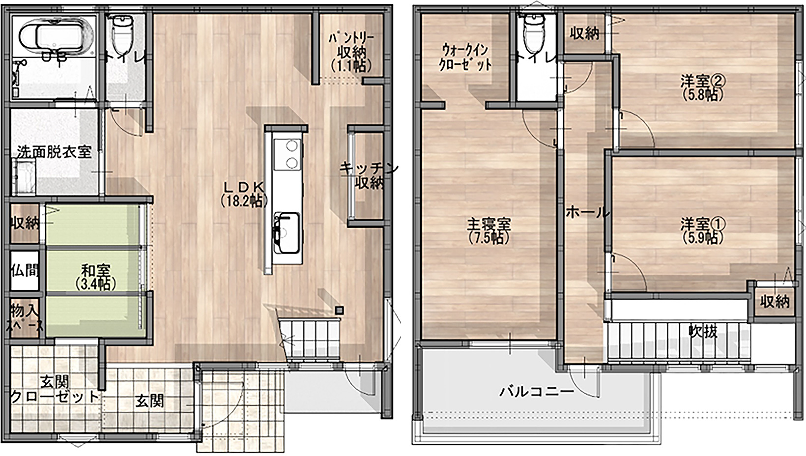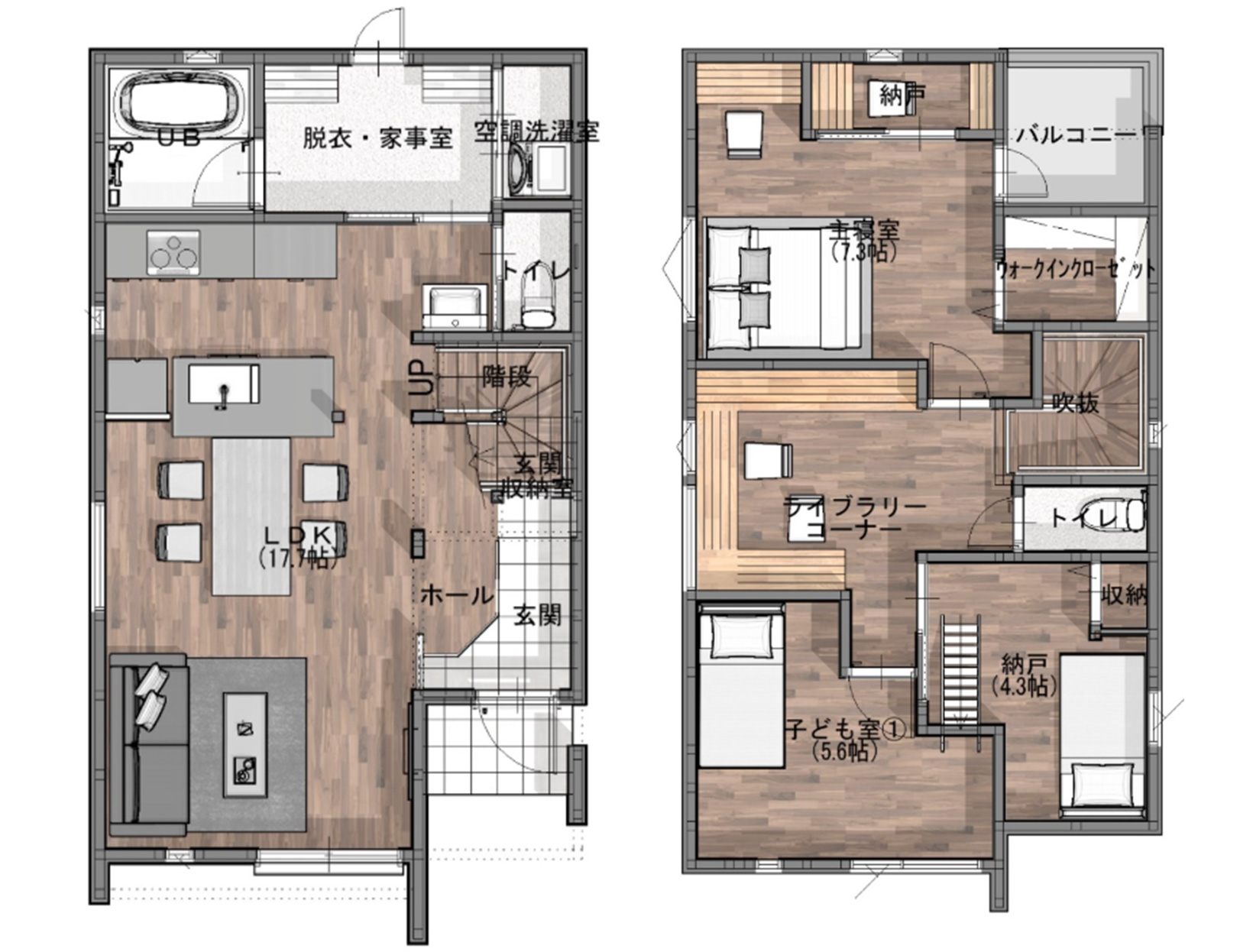 遊び心のある、個性的な間取りをご提案しています。ご家族の憧れる暮らし方を叶え、お子様の成長や独立した後のことも想像した空間の使い方をご提案します。